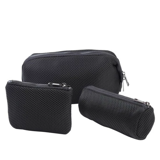 Your on-the-go style is posh and practicalthanks tothese mesh-detailed cosmetic pouches, a handy collection of little,roomy bags, each one fab for stashing and traveling with make-up and small essentials.