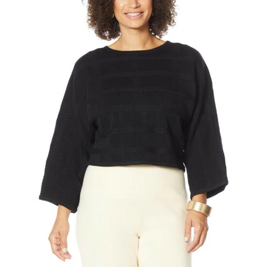 MarlaWynne SoftKNIT Plaid-Textured Sweater Popover