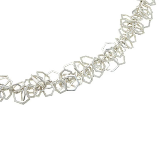 Count on this modern necklace’s energetic clusters of hexagonal links to get your casual looks into tip-top shape.