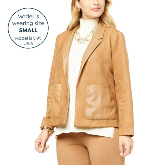 WynneCollection Bonded Faux Suede/Leather Blazer