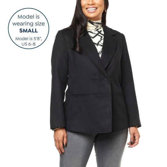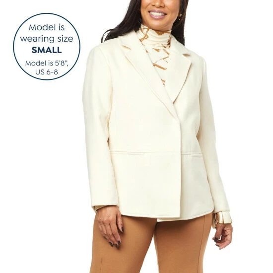 | Style: | Melton blazer-style car coat; fully lined |
