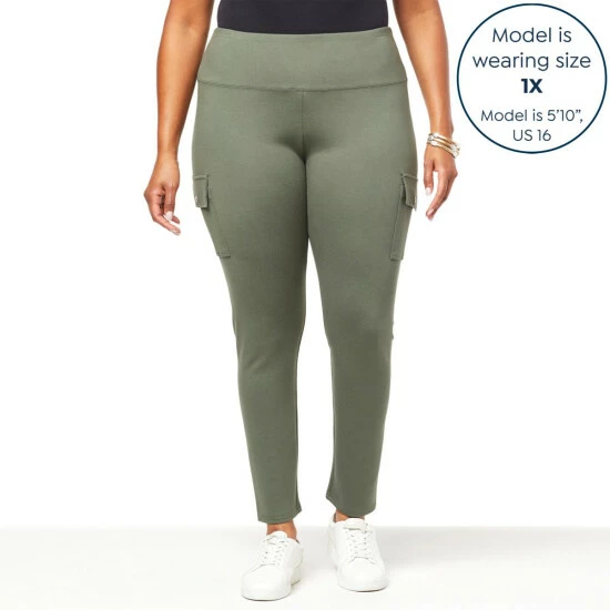 Ponte knit fabric and cargo-style pockets come together for a combo and fit you’re sure to love.