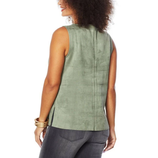 Get thelook and feel of suede without the weight (or hefty price tag). WynneLayers woven faux suede fabric is lightweight and completely luxurious in this versatile sleeveless shell.