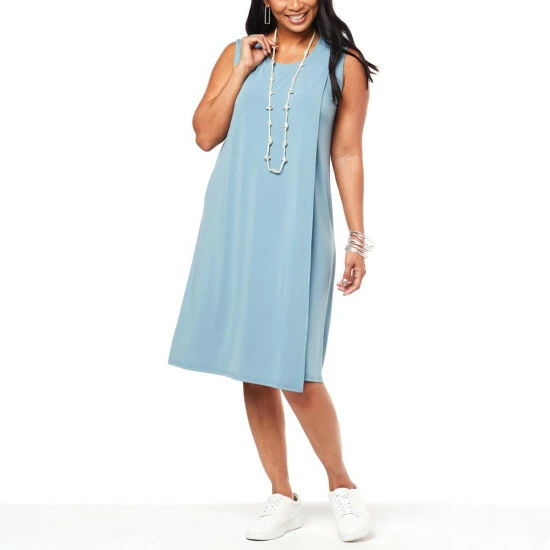 When in doubt, layer it up! This luxe crepe knit dress features double layers and a left side seam pocket, perfect for a summer day!