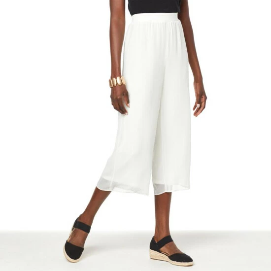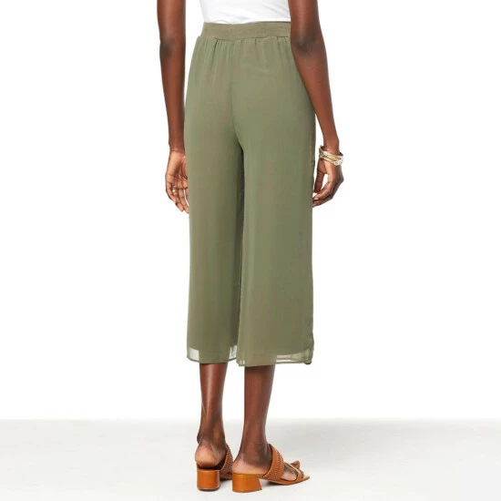 WynneLayers Pull-On Crop Pant with Chiffon Overlay