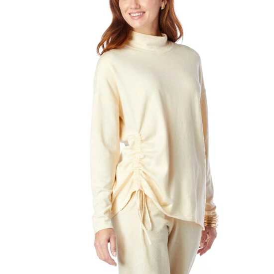 From fall’s welcoming breeze to winter’s chilly freeze, this soft sweater has a funnel neck design with an adjustable side drawstring to keep you extra warm.