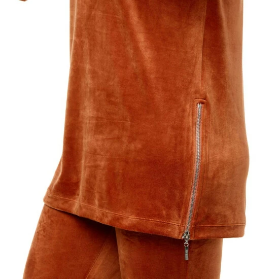 WynneLayers Velour Cowl Neck Tunic Top with Zipper Details