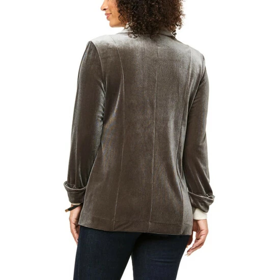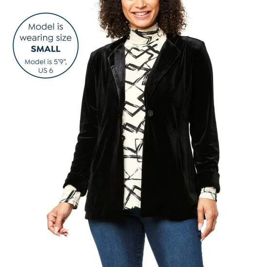 Who doesn’t love the smooth, silky look and feel of velvet?With two pockets and a single-button closure, this long-sleeve blazer is a sophisticated, stylish finishing touch to any evening’s outfit.