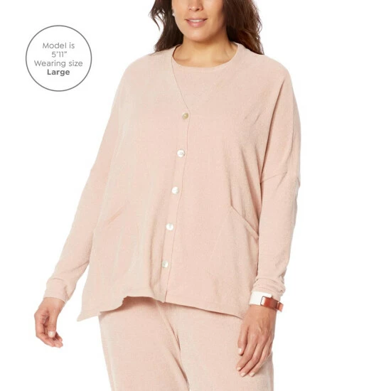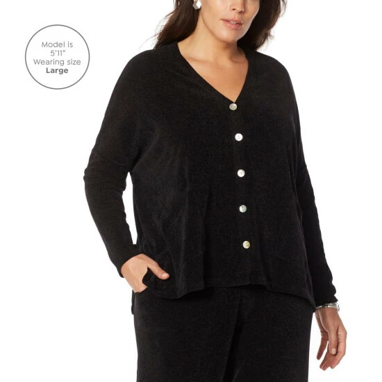 Reimagine your favorite at-home looks with this elevated loungewear cardigan. Super-soft chenille sweater knit in an oversized, easy-fit silhouettemakes it easy (not to mention comfortable and stylish) to go from Zoom call to coffee with friends in an instant.