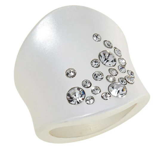 Wearing a velvety finish and scattered sparkle, this simple, saddle-style band serves up flexible flair that looks great with day and night casuals.