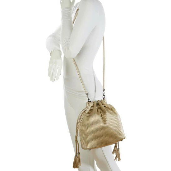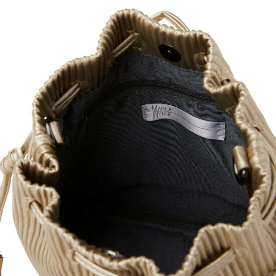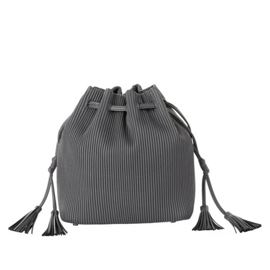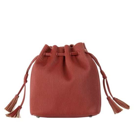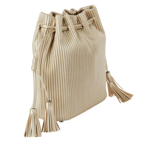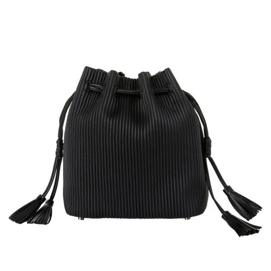 MarlaWynne Corrugated Drawstring Bucket Bag with Tassels