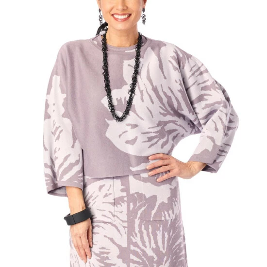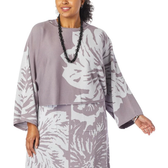 Floral prints aren’t just for springtime. This soft, double-knit jacquard croppedsweater is a fresh addition to your wardrobe that’s perfect for layering over a cami and jeans.