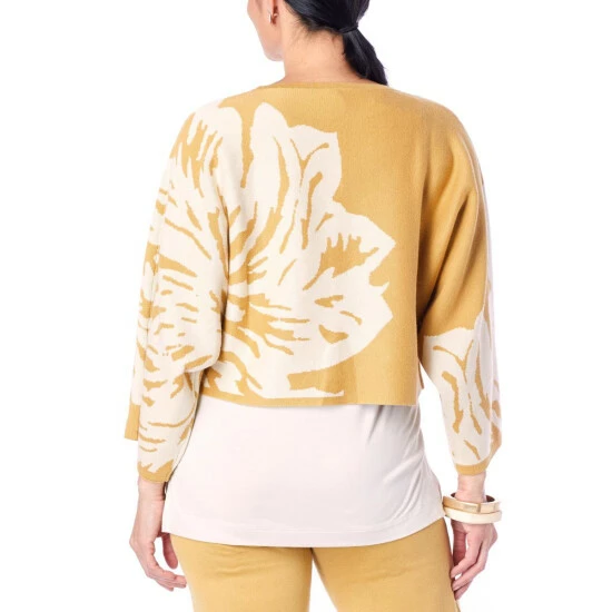 MarlaWynne Double-Knit Jacquard Cropped Floral Sweater