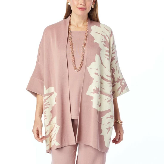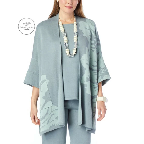 In an oversized silhouette and gorgeous floral print, the Jacquard Drama Topper from MarlaWynne layers over any season’s wardrobe with style and ease. You’ll find yourself reaching for it every time you walk out the door.