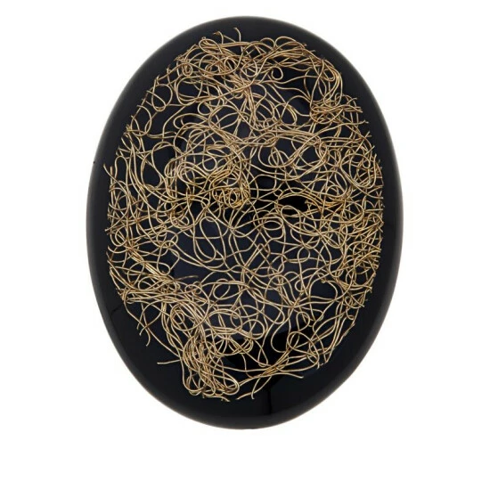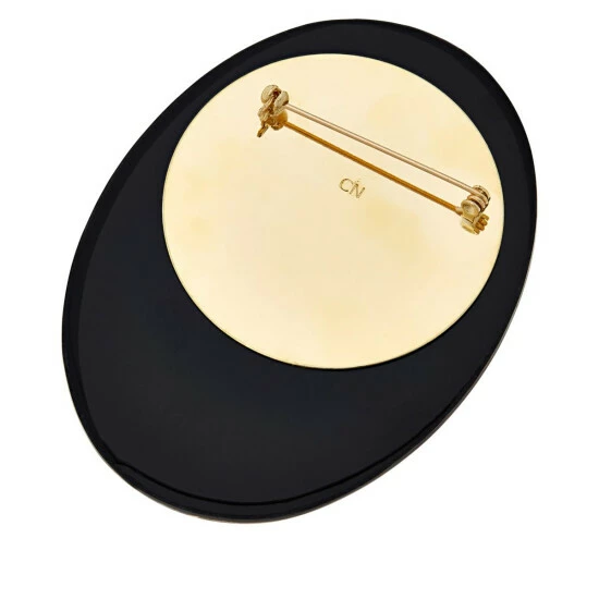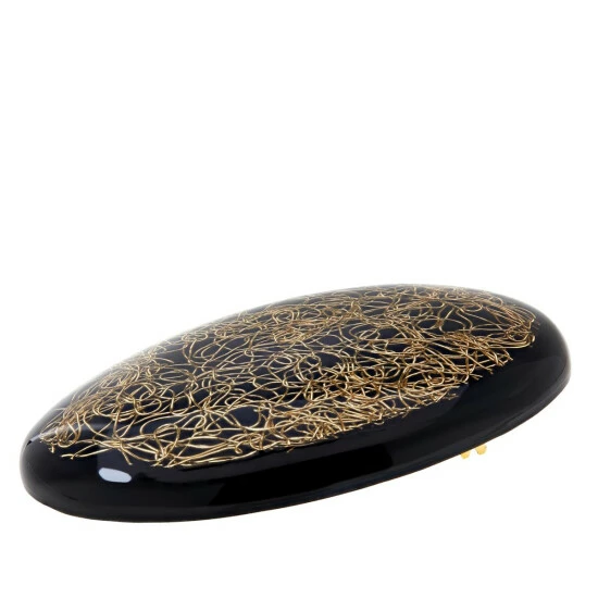 Clear and black resin elegantly encase thisbrooch’s tangle of filigree, anddeliver auniquely modern takeon throwback design.