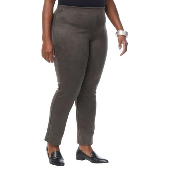 Sumptuously stylish, stretchfaux suede fabric adds a luxe,high-fashion feel to these classic, straight-leg pants from MarlaWynne.