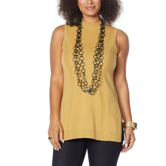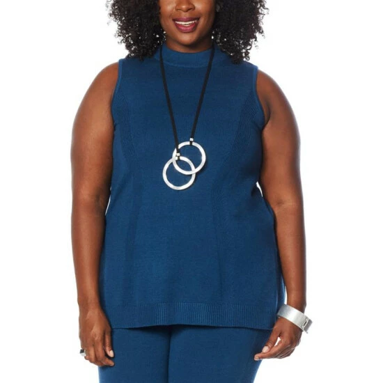 MarlaWynne Sweater Knit Mock-Neck Tank with Rib Trim