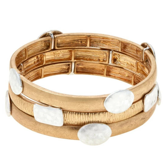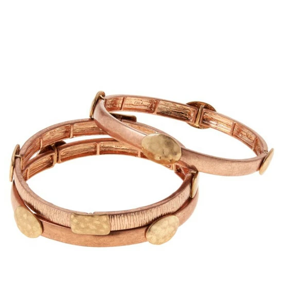 MarlaWynne Two-Tone 3-piece Stretch Bracelet Set