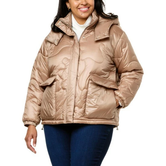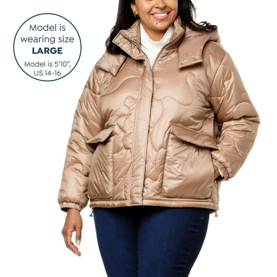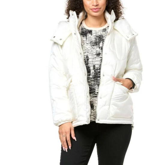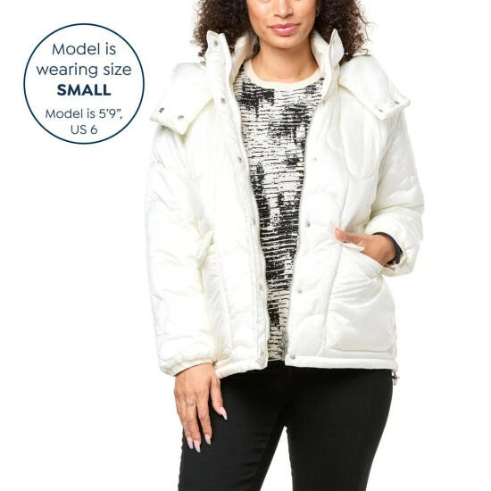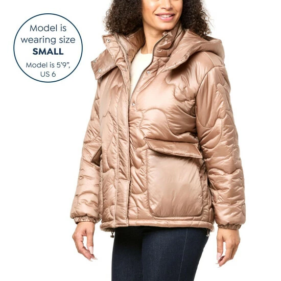 WynneCollection Pearlized Hooded Puffer Jacket with Pockets