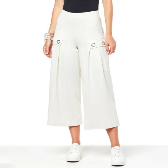 WynneCollection Polished Knit Cropped Pant with Grommet