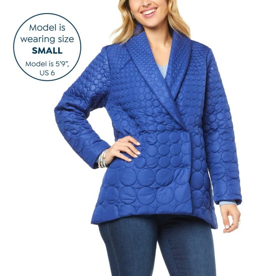 A jacket so comfortable, you won’t believe how sophisticated it looks when you wear it! This quilted puffer jacket has a lining that keeps you warm, a shawl collar, and two front pockets to hold your necessities.