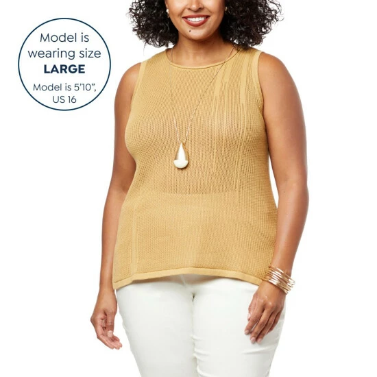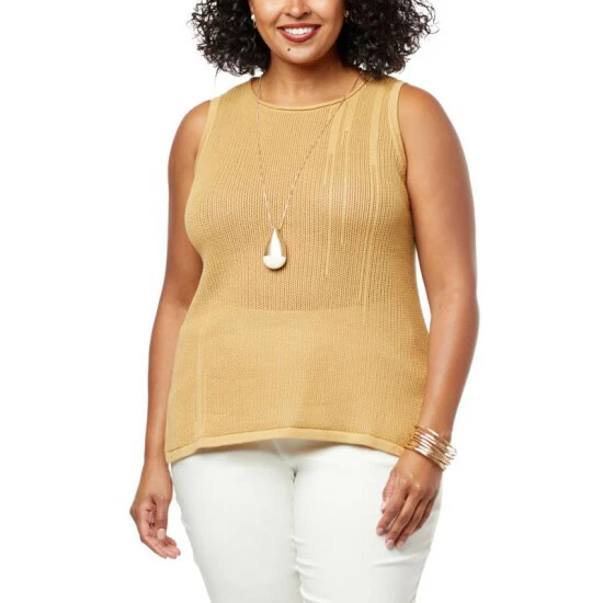 Build an enviouslytimeless, seasonless wardrobe with classics like this mesh stitch sweater knittank from WynneCollection, perfectly designed for layering.