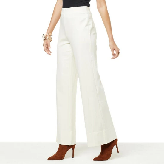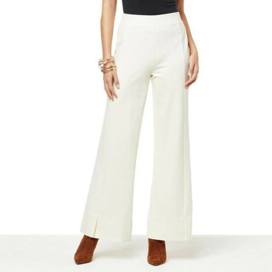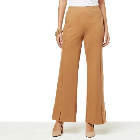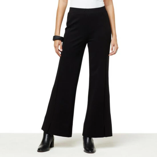 From workplace to weekend, you’ll live inthesesuper-comfy, 360stretch knit wide-leg pants from WynneLayers, featuring a soft flare leg with a slit at the front.