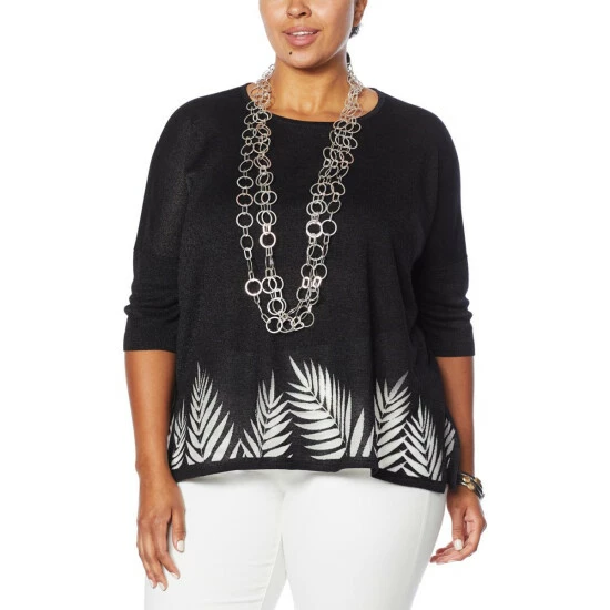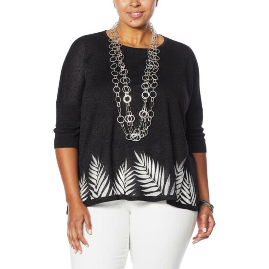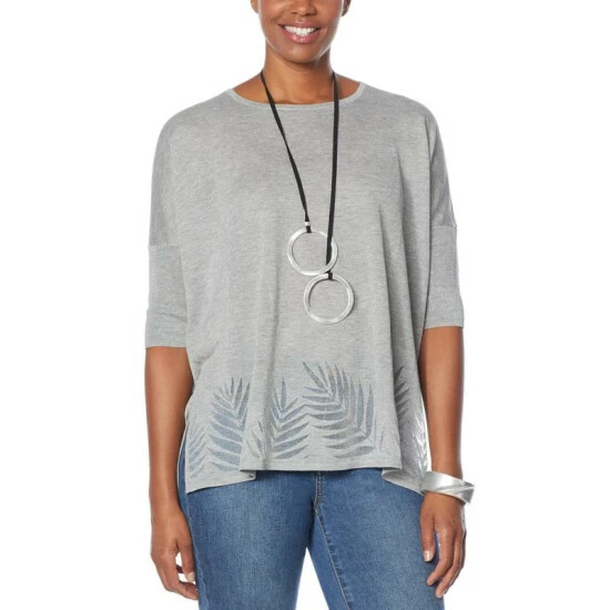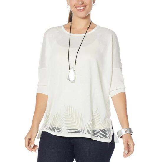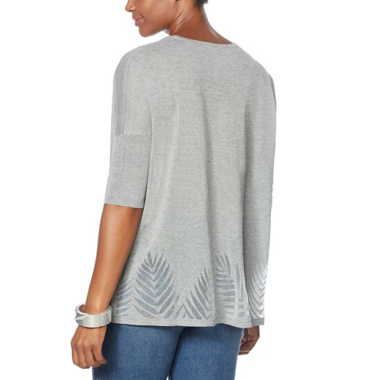 | Fabrication: | Soft sweater knit with burnout leaf border pattern |