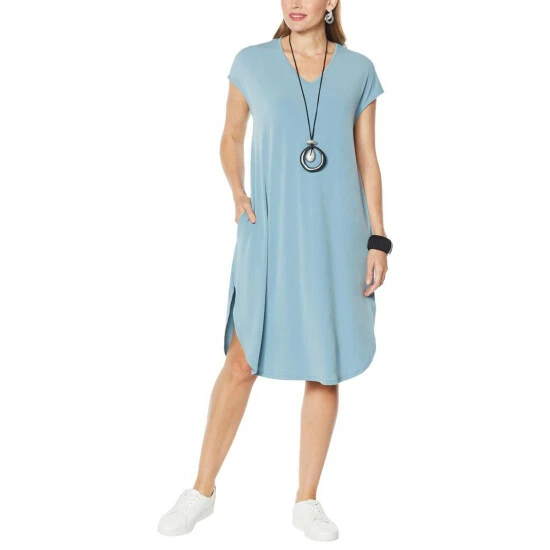 WynneLayers Cap-Sleeve Shirttail Hem Midi Dress