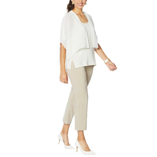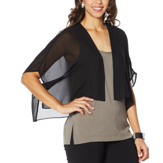 Warm-weather looks require a lightweight layer. This chiffon cropped topperadds a whimsical touch to your spring and summer styles.
