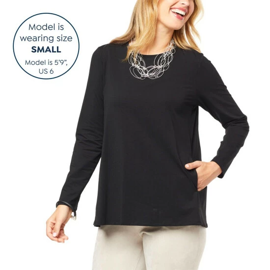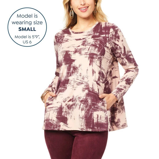 Break free from your monotonous, everyday fashion cocoon, and transform your look with this flatteringsolid or printed butterflytee from WynneLayers, featuring a convenient inseam pocket at the front.