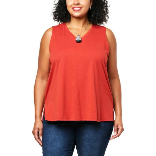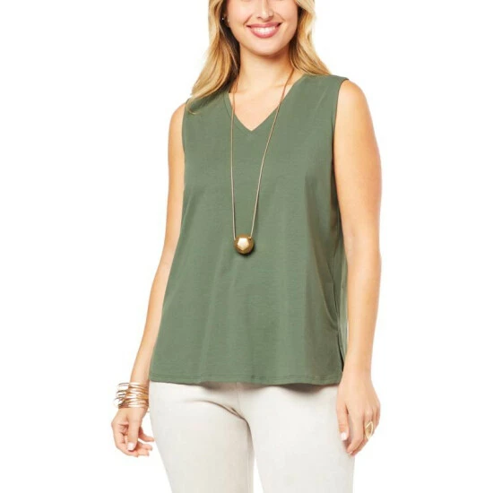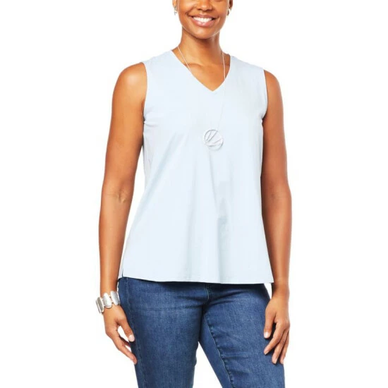 WynneLayers Cotton V-Neck Tank with Side Slits