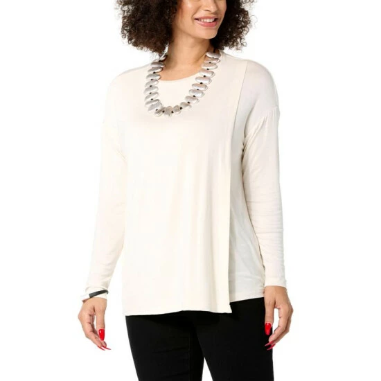 WynneLayers Crewneck Jersey Knit Tee with Overlap Detail