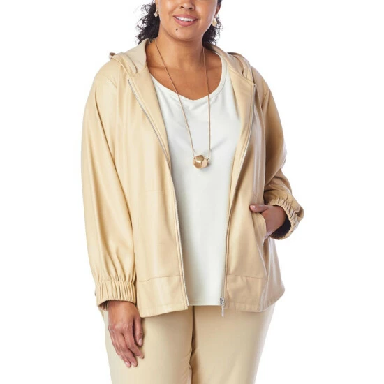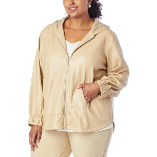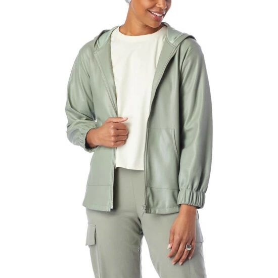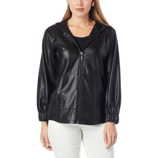 WynneLayers Faux Leather Hooded Jacket