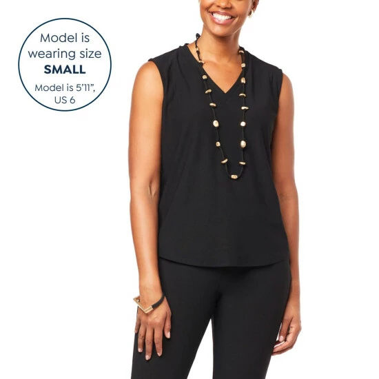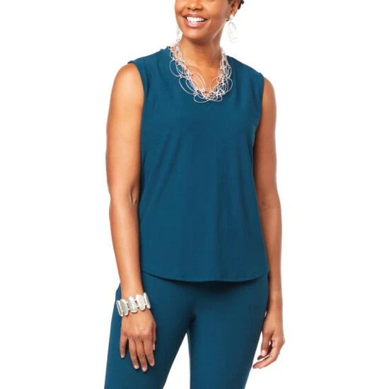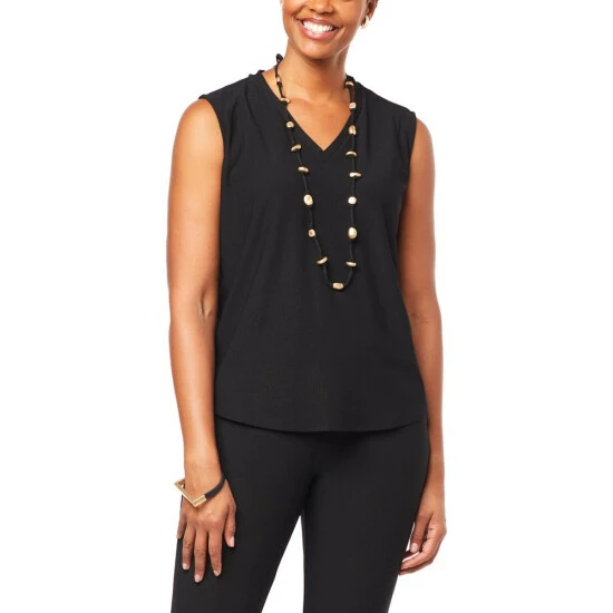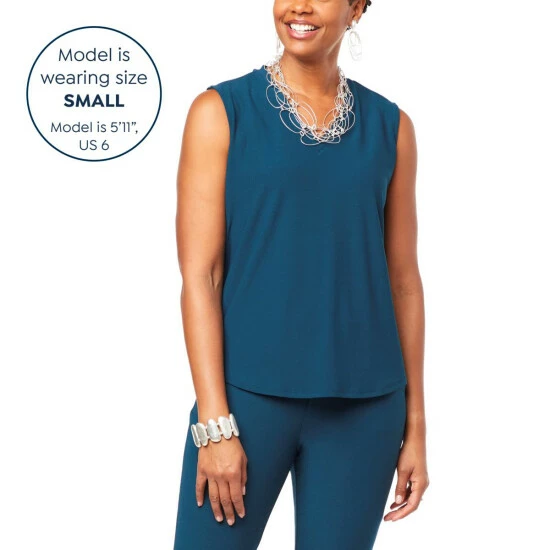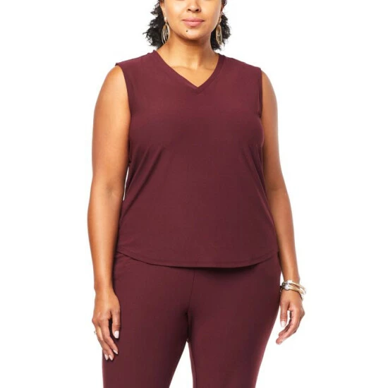 Your favorite at-home looks can go outside too with this elevated loungewear tank top. Super-soft luxe crepeknit with padded shoulders upgrade the classic V-neck tank look.
