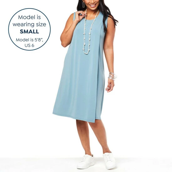 When in doubt, layer it up! This luxe crepe knit dress features double layers and a left side seam pocket, perfect for a summer day!