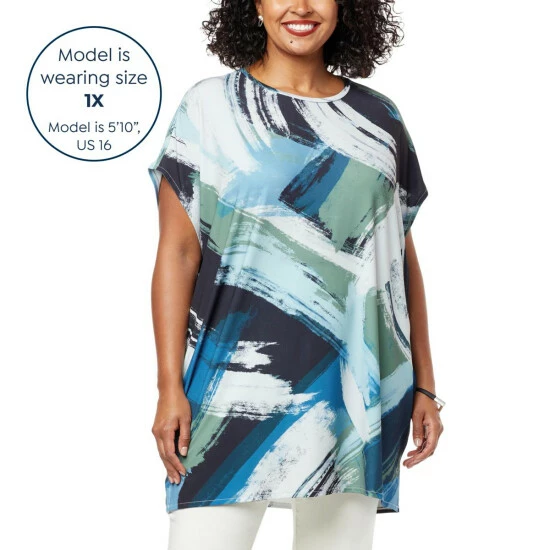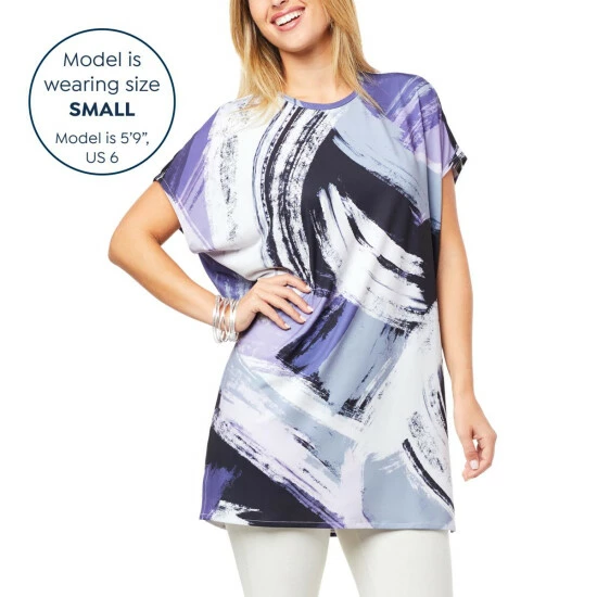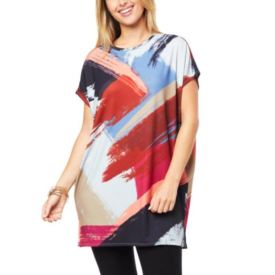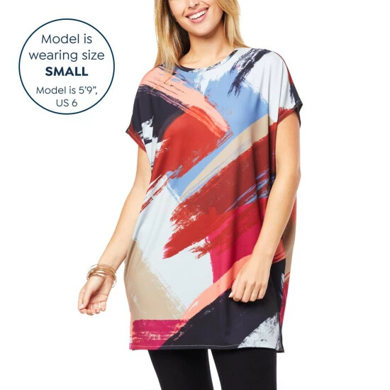 We all have a little artistic side – show off yours with the Painterly Tunic from WynneLayers, featuring an abstract brushstroke print in soft, sweet colors.