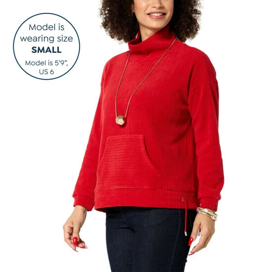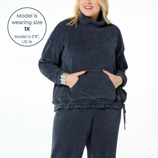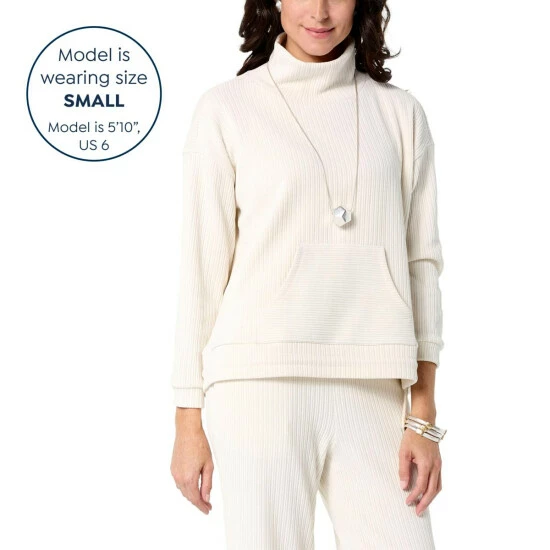 From fall’s welcoming breeze to winter’s chilly freeze, this soft, plush ottoman top pairs perfectly with Marla’s matching pants to give you snuggle-worthy style.
