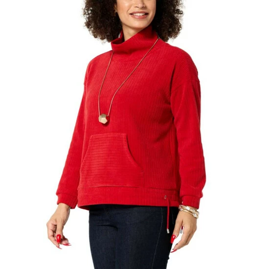 WynneLayers Plush Ottoman Knit Mock-Neck Top with Drawstring