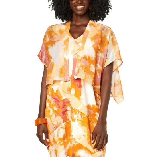 Warm-weather looks require a lightweight layer. This chiffon cropped shrugadds a whimsical touch to your spring and summer styles.