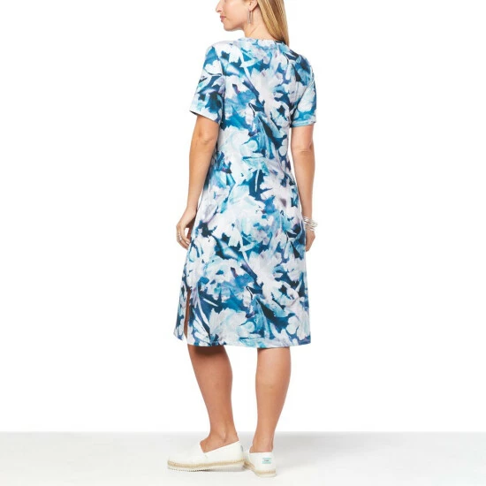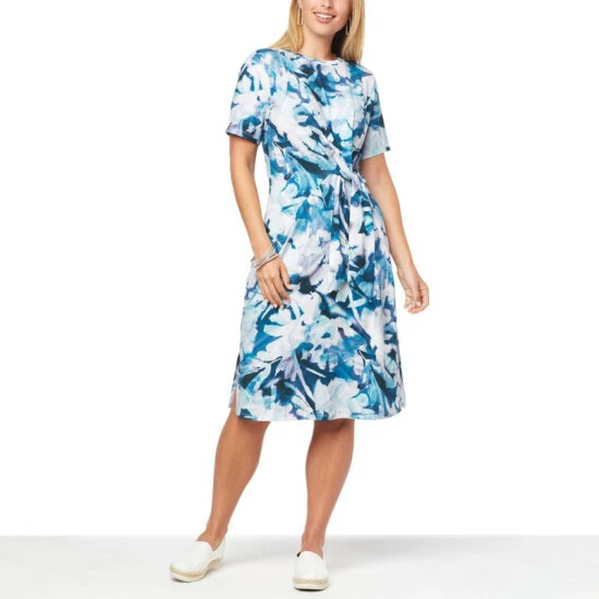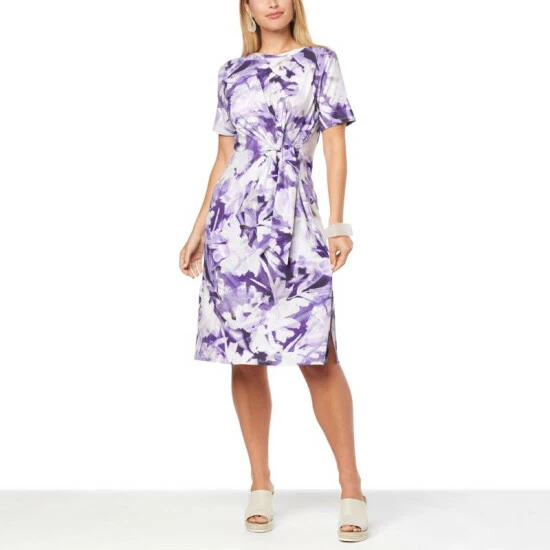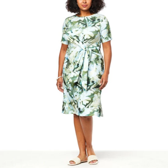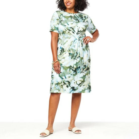 Floralprints and a tie at the waistadd figure-flatteringstyle to this classic matte jerseydress from WynneLayers.