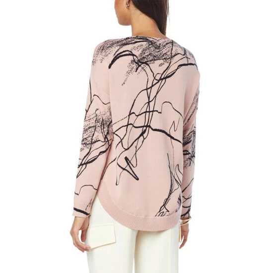 WynneLayers Scribble Print Curved Hem Sweater