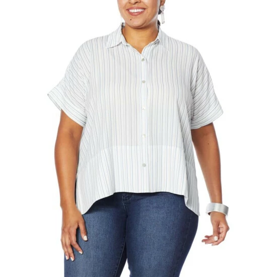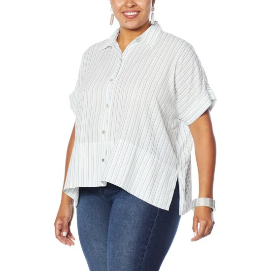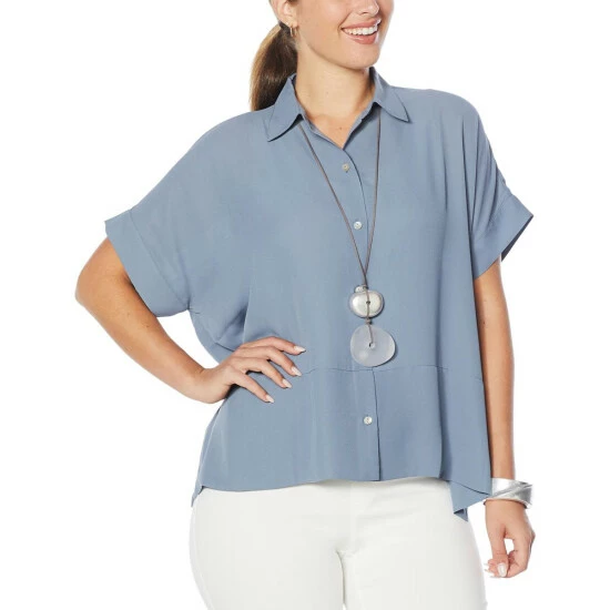 WynneLayers Short-Sleeve Button-Up Square Shirt