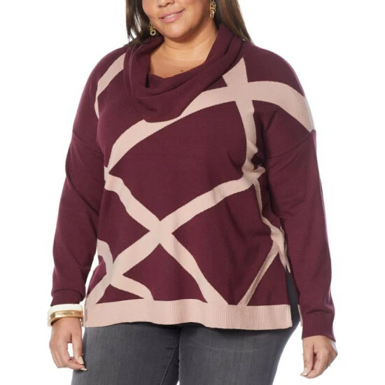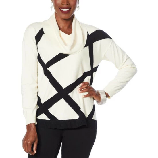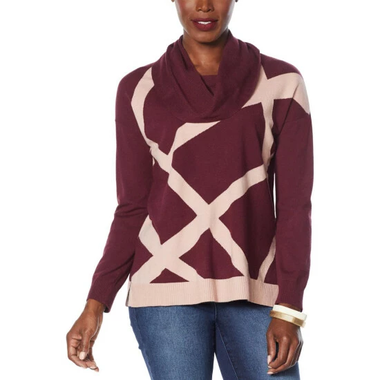 WynneLayers SoftKNIT Cowl-Neck Intarsia Sweater
