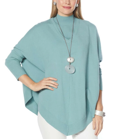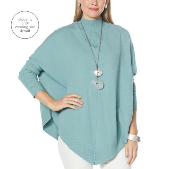 From fall’s welcoming breeze to winter’s chilly freeze, this soft knit poncho sweater layers nicely over coordinating MarlaWynne staples to give you snuggle-worthy style.