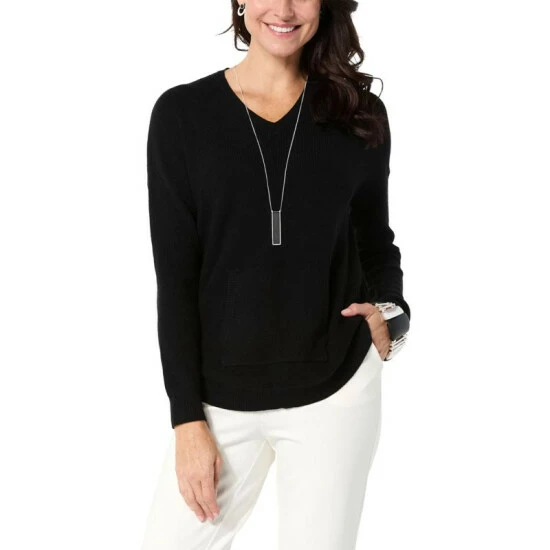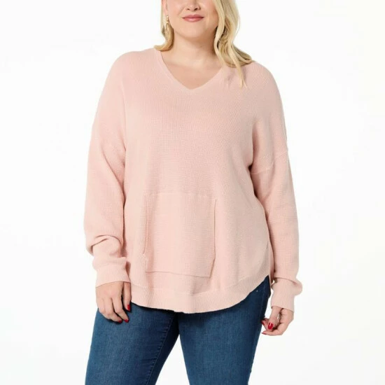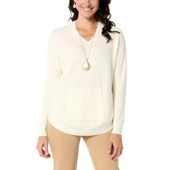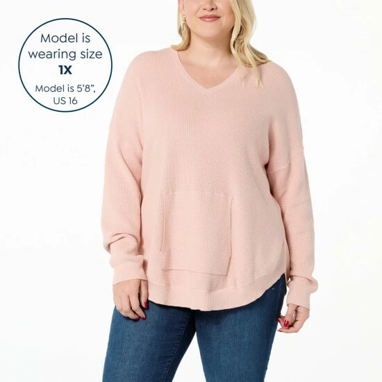 WynneLayers SoftKNIT V-Neck Waffle Stitch Sweater