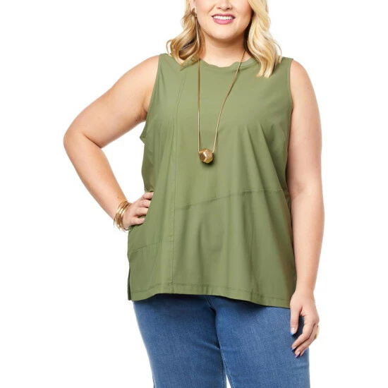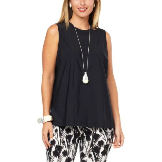 A not-so-basic wardrobe staple. This A-line tank top is made with soft stretch tech knit fabrication with decorative seaming along the front and back.