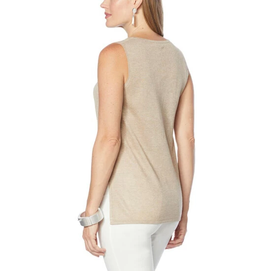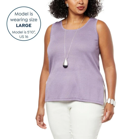 Build an enviable wardrobe with versatile classics like this softsweaterknit tank from WynneLayers. Layered or worn solo, it’s a high-fashion, seasonless style chameleon.