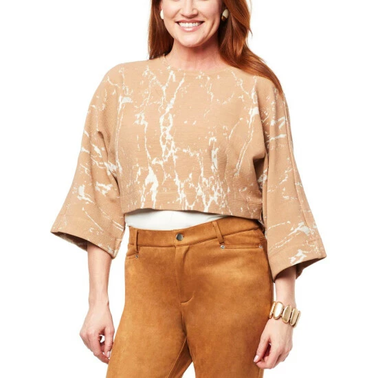 Billowy layers add elegance and glamour to your fall and winter wardrobe. We extra-love the way voluminous sleeves and acropped length complement the marble-patterned, texturedfabric on this simple popover from WynneLayers.