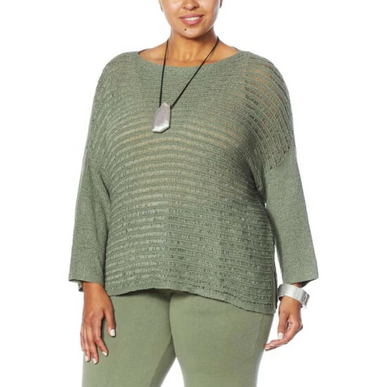 We love the versatility of this lightweight sweaterknit topfrom WynneLayers. Voluminous dolmansleeves, open ladder stitching and a slightly cropped silhouette give it endless layering opportunities.